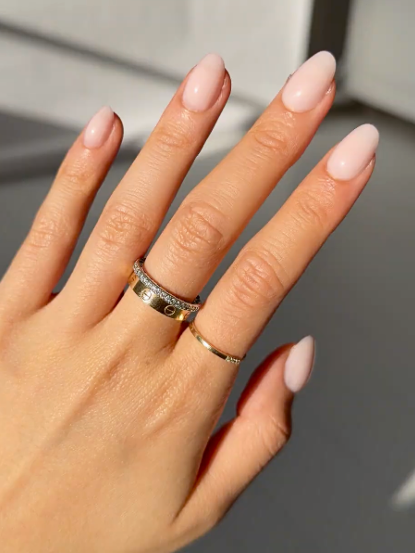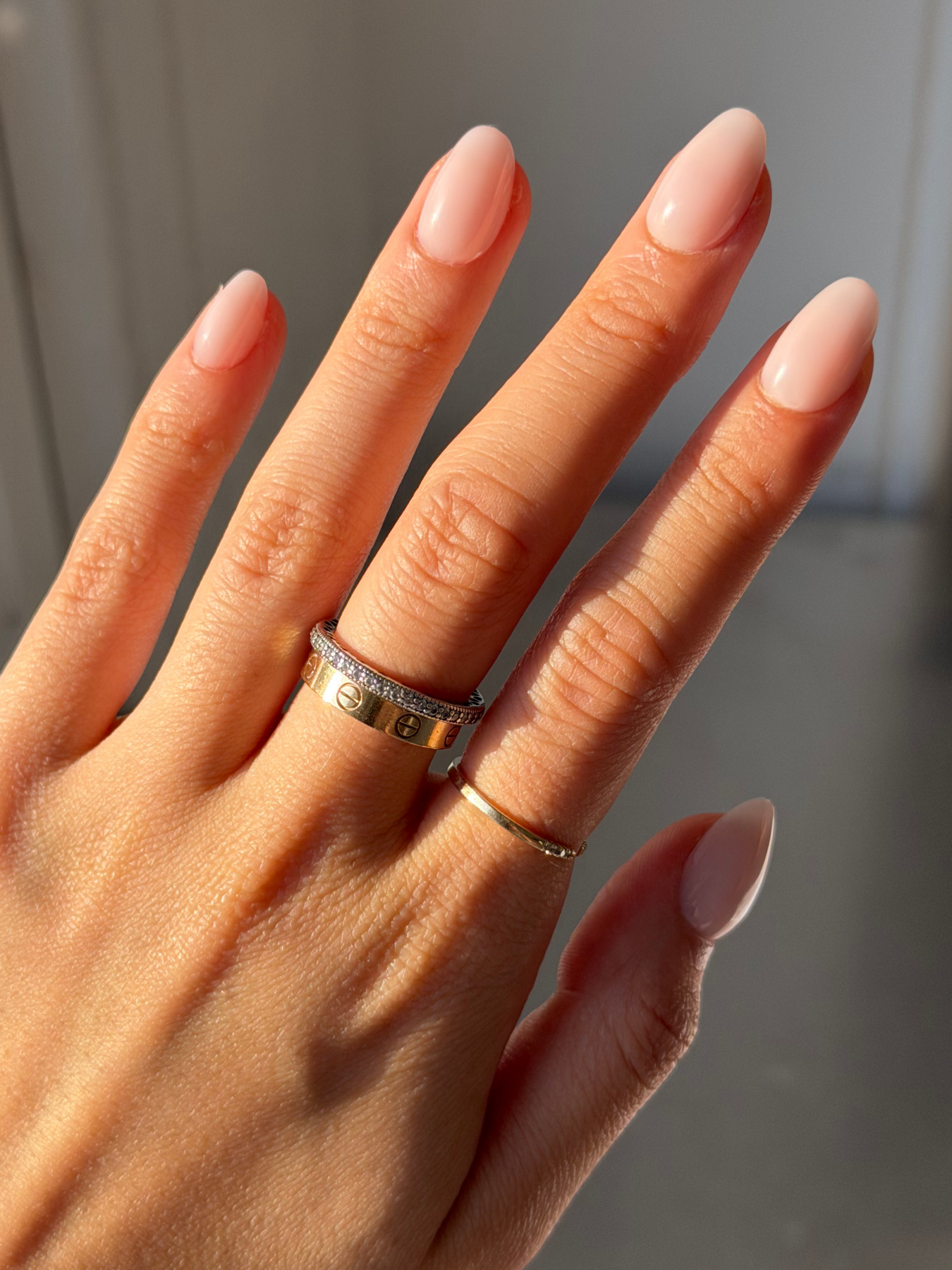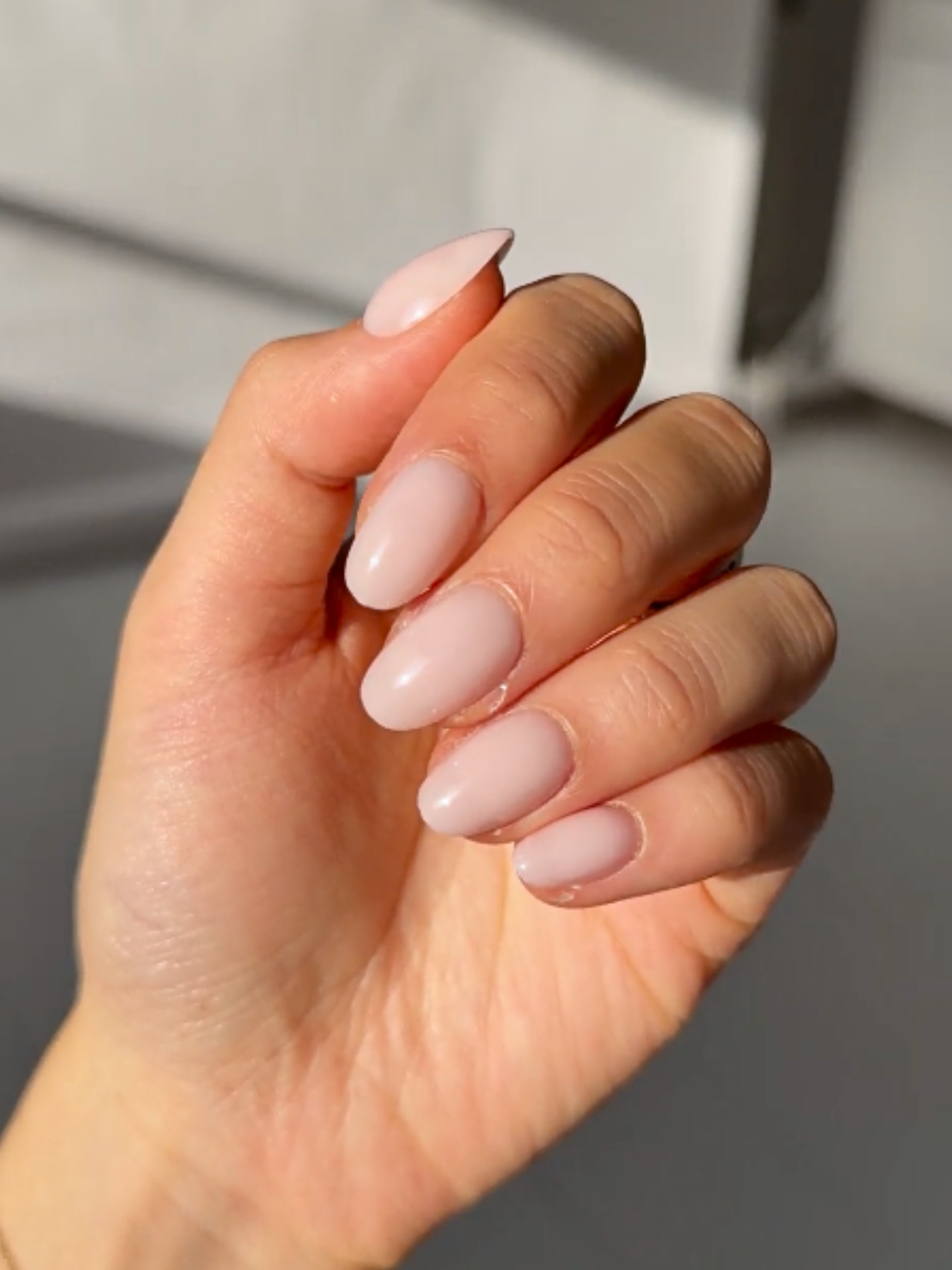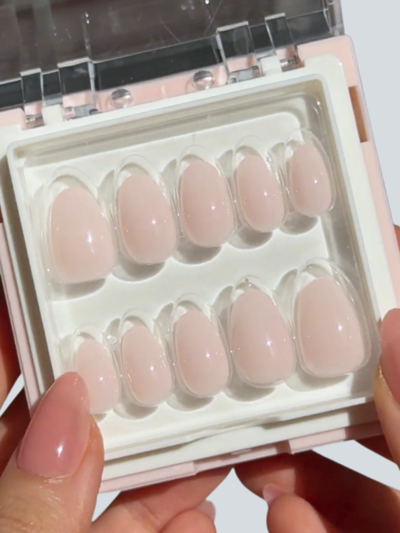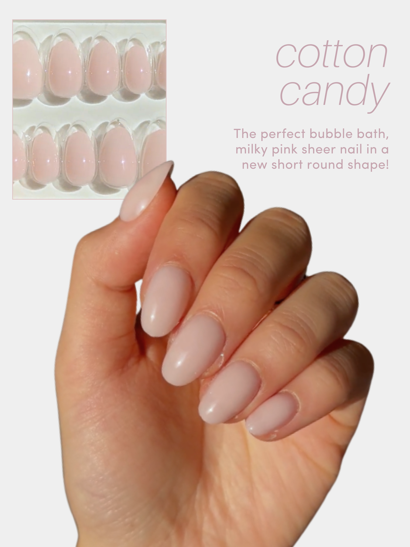 Cotton Candy is a sheer milky pink nail in short-round shape.